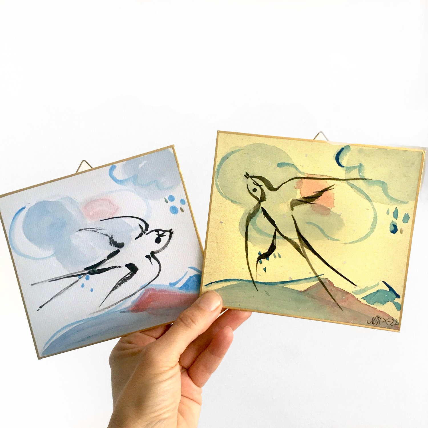 Original art -Sparrows, diptyque
