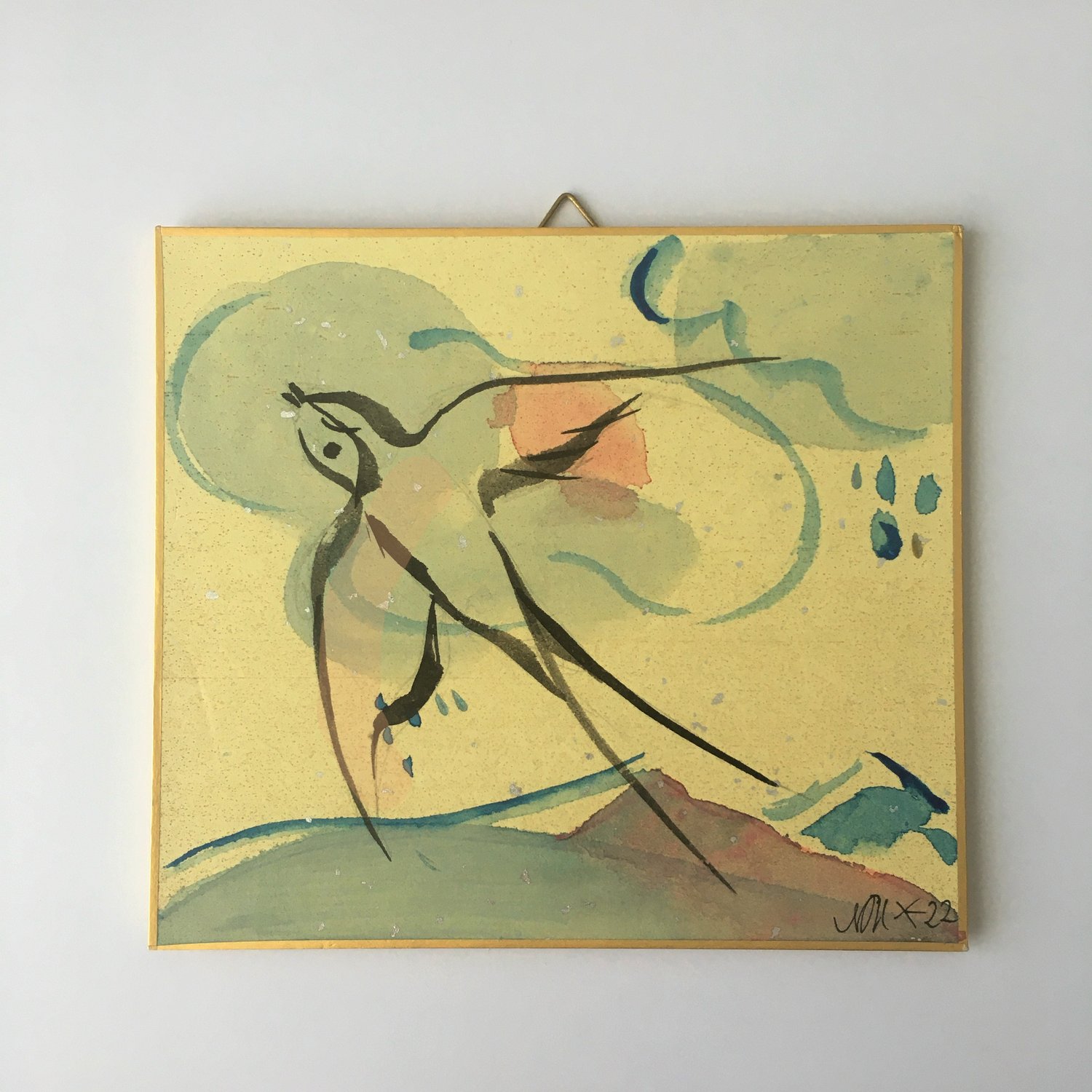 The art piece is signed in front and back and the tittle is written on the back.